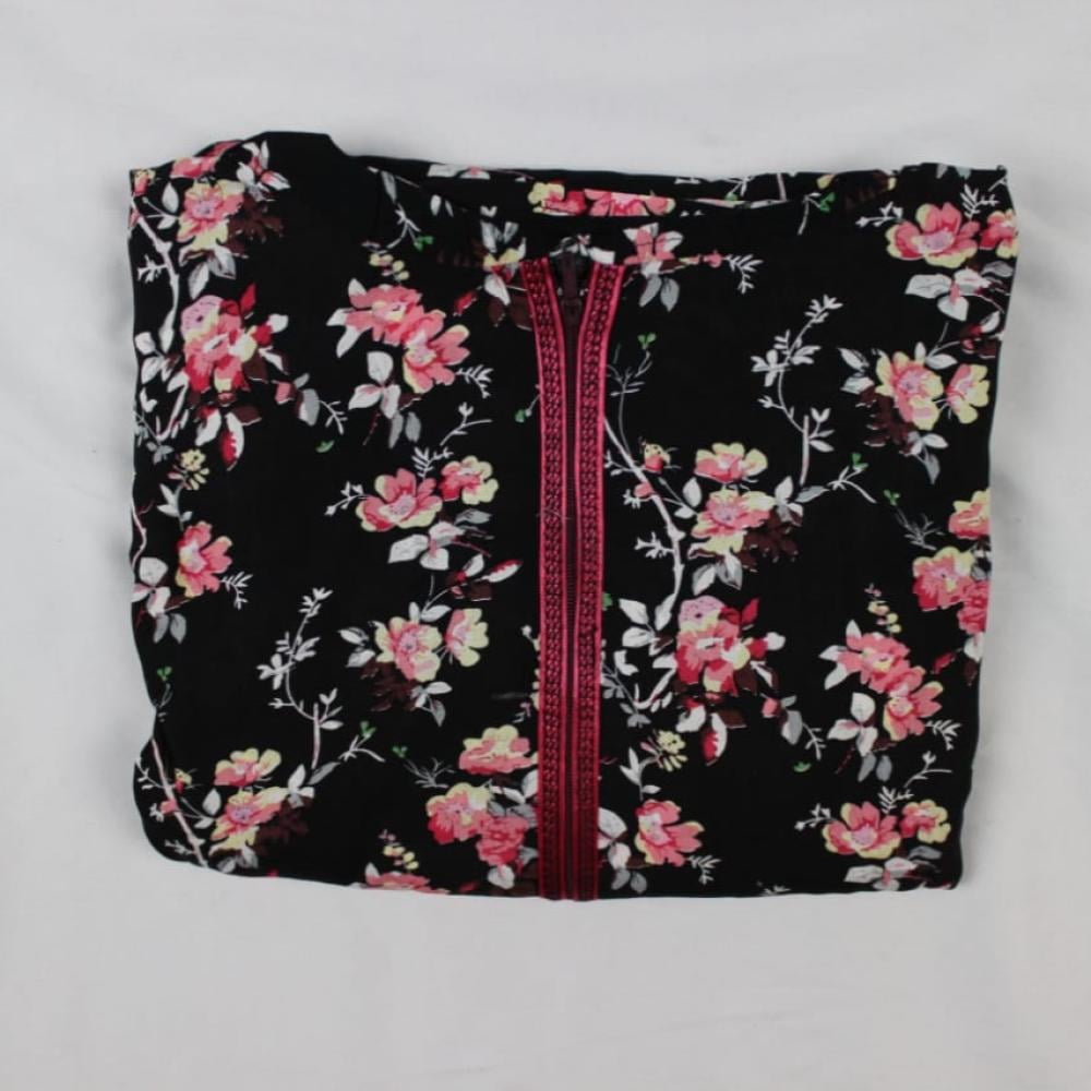 شرشف الفراشة الأسود المشجر بورد أبيض وروز يأتيكِ بلون أسود أنيق تتناثر عليه ورود بيضاء ووردية ناعمة تمنحك إحساساً بالرقة والجمال. تصميمه الفراشي مريح، يناسب جميع المقاسات ويمنحك حرية الحركة أثناء الصلاة أو الجلوس. القماش خفيف ومسامي، مما يجعله مريحًا في جميع الفصول. متوفر الآن حصرياً في غرز.