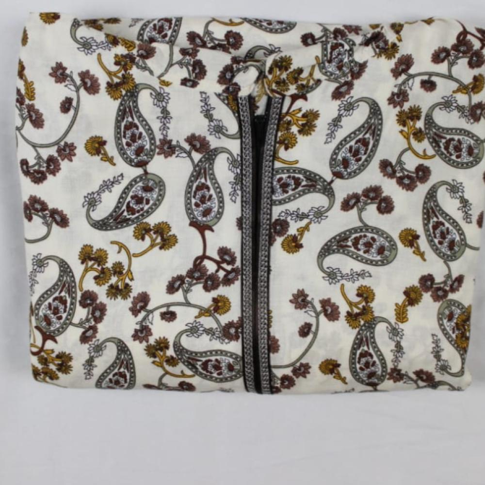 القماش قطن مصري، ناعم وخفيف على الجسم. المقاس واحد يناسب الكل، والطرحة متصلة عشان ما تتعبين في ترتيبها.
